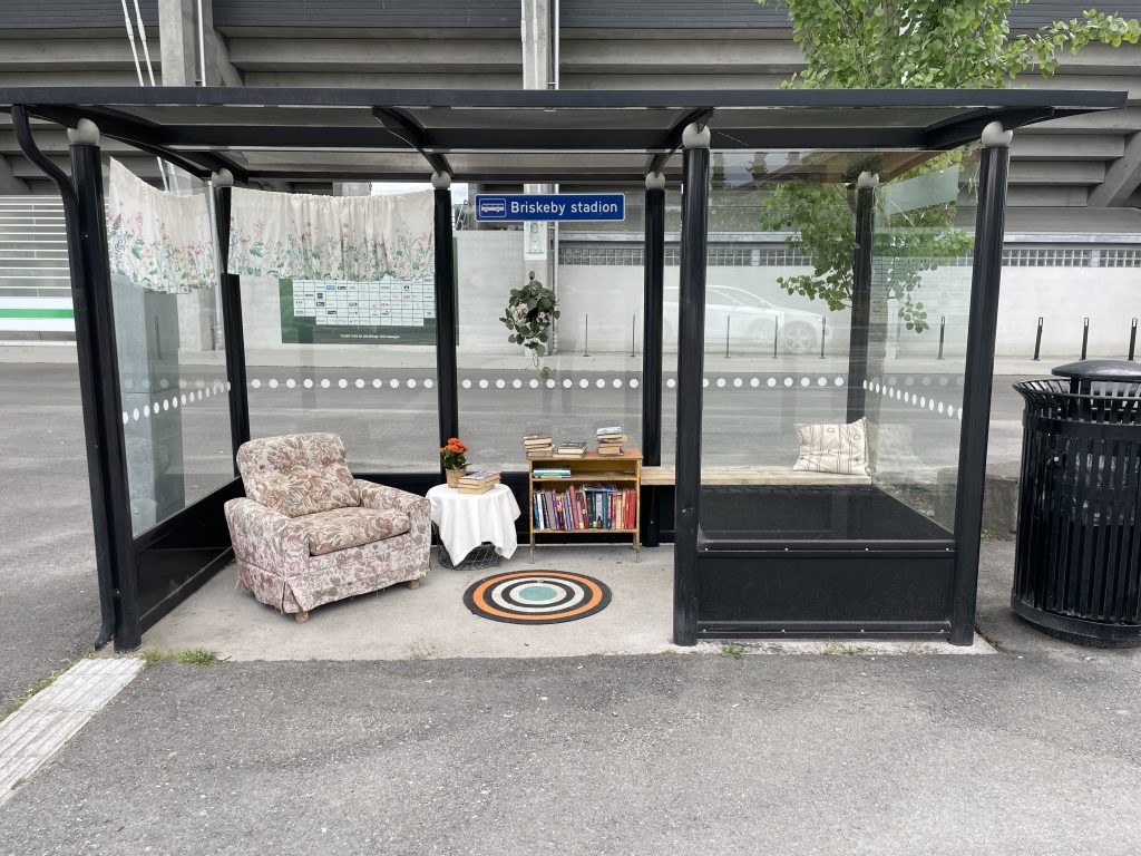 Das gemütlich ausgestaltete Wartehäuschen deutet aber nicht auf die geringe Frequenz der Busse hin, denn die war tatsächlich hoch und die Busse (übrigens alle elektrisch angetrieben) waren gut besetzt.