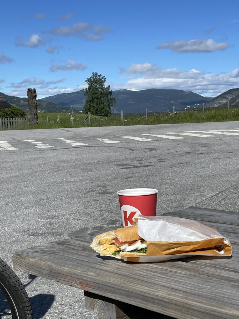 Bei. bestem Wetter ging es nun weiter. Nach kurzer Zeit war der Mjøsa erreicht, der größte See Nowegens an dessen Seite ich die nächsten Kilometer auf einem wunderbar angelegten Radweg in ziemlicher Einsamkeit zurückgelegt habe. Am Ende der Stecke ging’s nochmal über einen kleinen Bergrücken und ich habe wieder knapp 600 Höhenmeter zu Buche stehen.