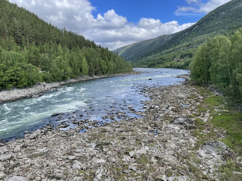 Die Strecke führt weitgehend auf der alten Straße, aber auch auf Nebenstraßen auf der gegenüberliegenden Flussseite entlang und der Anstieg ist mit rd. 400m nur bei einem Drittel des Vortages. Dennoch spüre ich meinen Körper immer stärker und stelle fest, dass ich trotz relativ kurzer und nicht stark ansteigender Strecke stark erschöpft bin. Die bestellte Hytte wartete schon auf mich, diesmal aber ohne Wasseranschluss.