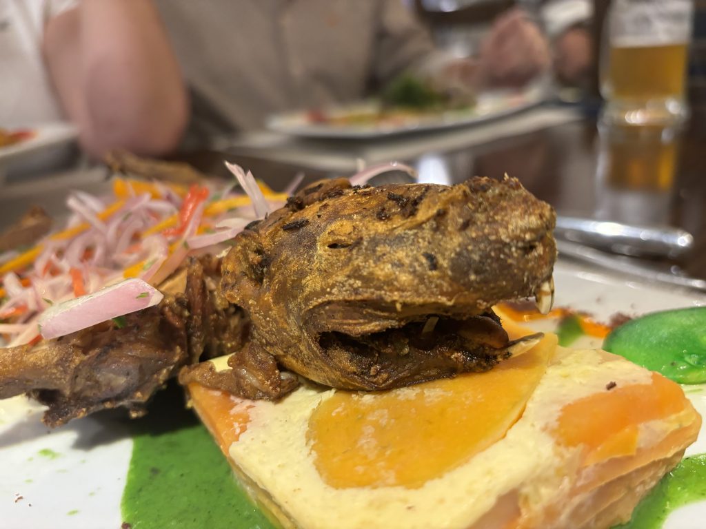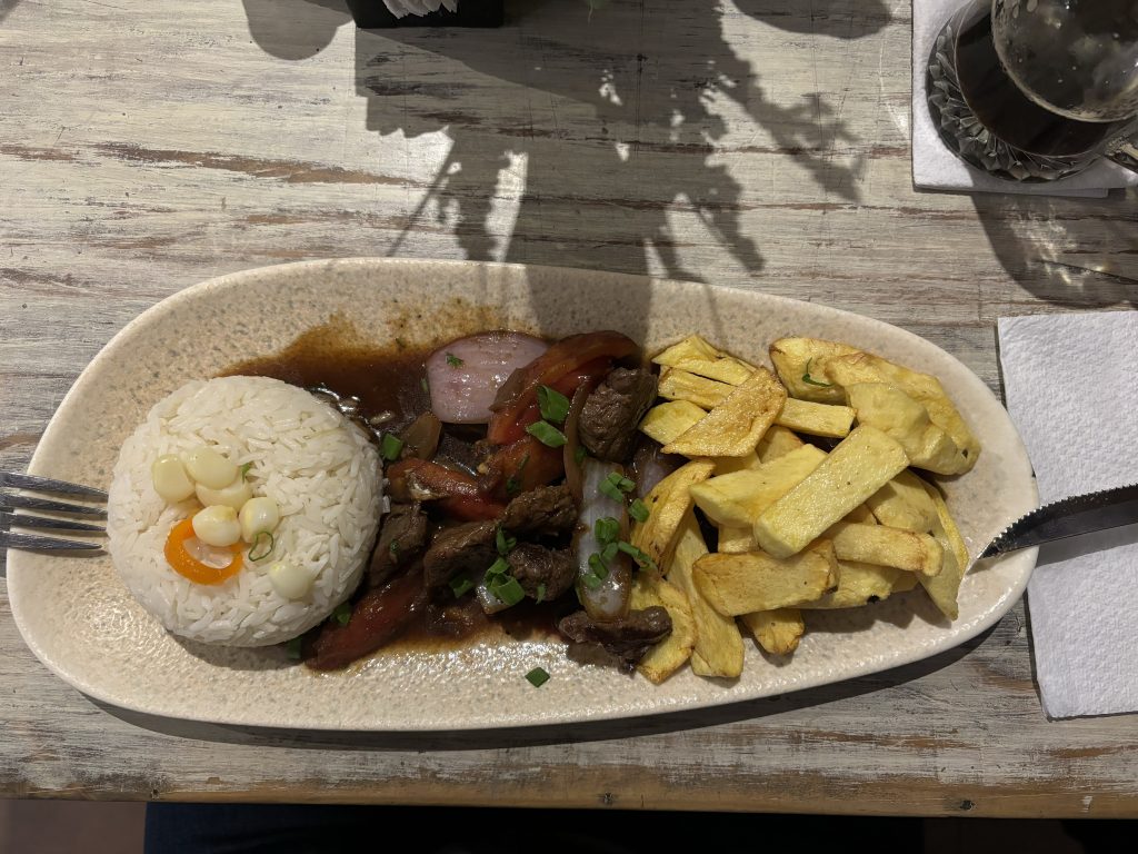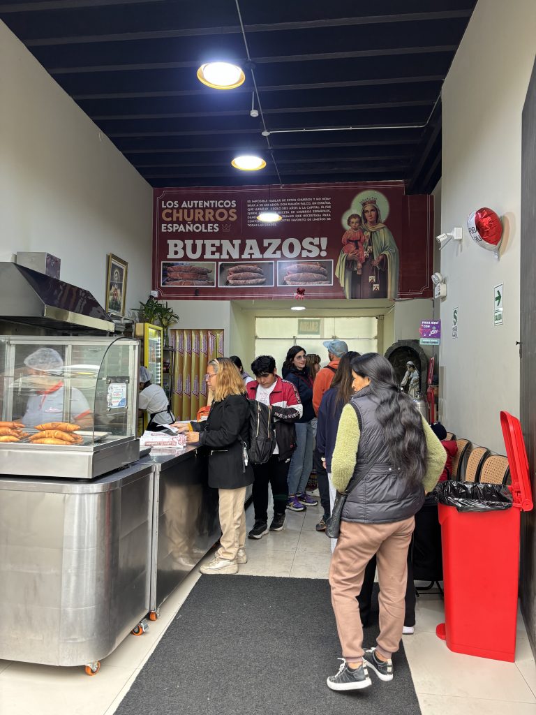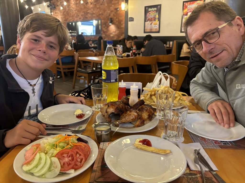 Churros an jeder Ecke, laut den Peruanern die einzig richtigen, wie ein langgezogenes Croissant erhältlich mit 3 Füllungen – sau lecker. Und gleich noch was Leckeres: Pollo (also Huhn) langsam über Kohle erhitzt, dadurch saftig und knusprig (und leider auch ein wenig knoblauchhaltig) – von Peruanern gern auch zu Geburtstagen besucht. Ein ganzes Huhn für wenigstens drei Personen mit Salat, Inca Cola und Pommes satt für 21€ – läuft.
