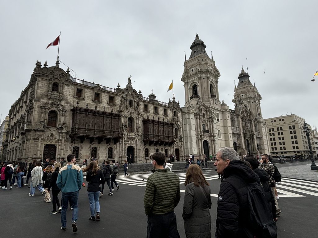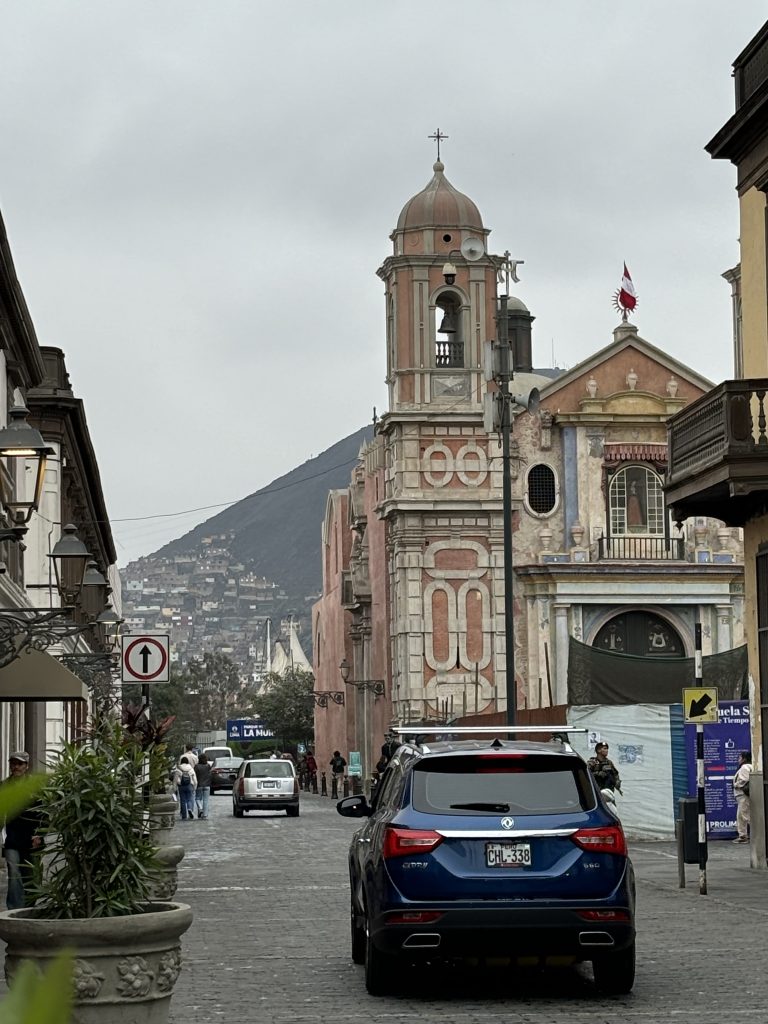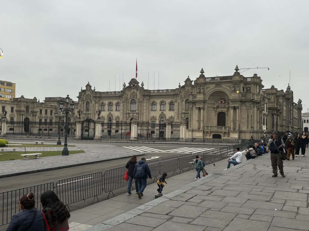 Auch wenn die Altstadt im Vergleich zu italienischen oder spanischen Städten nicht hervorsticht, hat sie doch recht schöne Ecken. Mitte unten Kathedrale zur Gründung Limas mit den Gebeinen Pizarros, daneben der Präsidentenpalast, derzeit mit einer Präsidentin – beide nicht besonders beliebt.