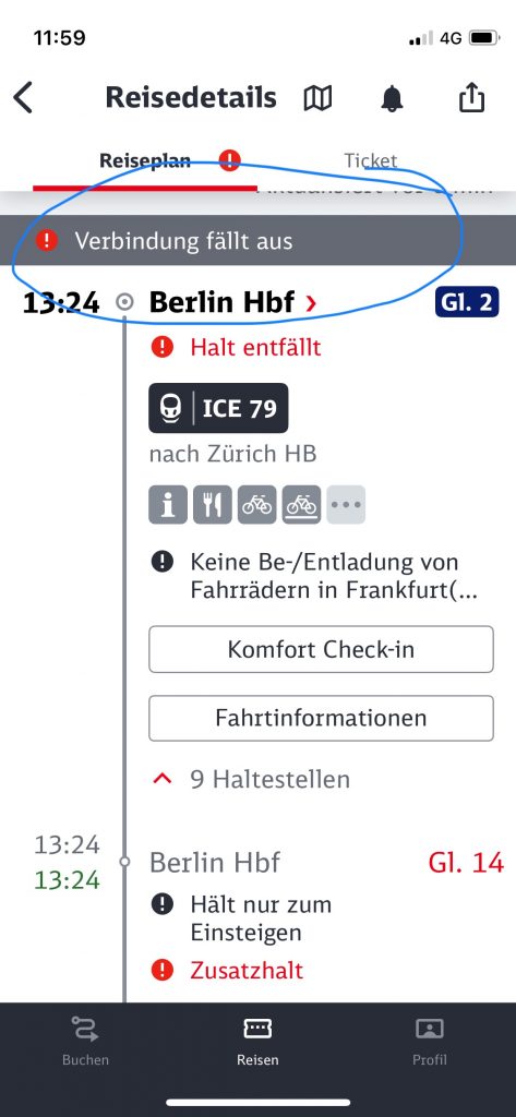Schreck am Anfang: Mehr oder weniger durch Zufall stellen wir gegen 11:00 Uhr fest, dass die DB offenbar unsere Zugverbindung gestrichen hat. Telefonisch war zunächst keine Auskunft zu erhalten. Also ganz schnell ein Taxi gerufen und ab zum Hauptbahnhof, um eine Alternative zu klären. Im Auto dann endlich die telefonische Auskunft: Es entfällt lediglich der Halt an Gleis 2. Statt dessen erfolgt die Abfahrt zu gleichen Zeit von Gleis 14! 😳 Das hättet ihr sicher genau so erkannt, aber unsere mangelnde Fantasie hat wieder ein paar graue Haare mehr bewirkt. 😜