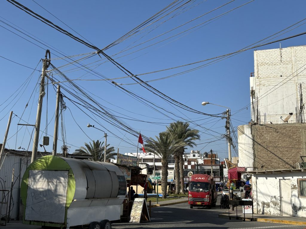Die peruanische Art, Kabel für Strom- und Datenversorgung über der Straße zu verlegen, würde der Stromnetz Berlin wahrscheinlich nicht gefallen. Dass sich da noch jemand zurecht findet …