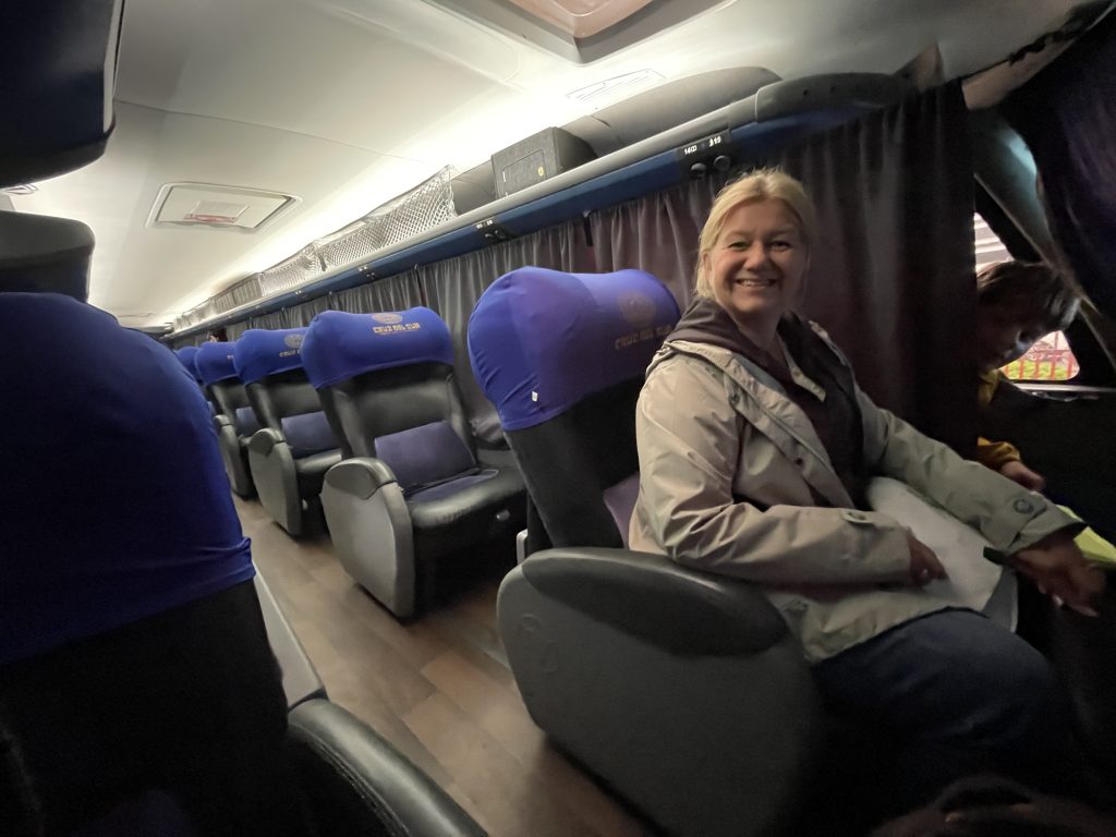 Mit dem Bus ging es gleich morgens nach Paracas. Wir wurden um 7:30 aus dem Hotel abgeholt (trafico terrible inclusive) und zum Busbahnhof gebracht. Vor uns lagen 4 Stunden Fahrt, die überwiegend durch die Wüste gingen. Der Hammer aber war der Bus selbst. Das war jetzt mal richtig Luxus.