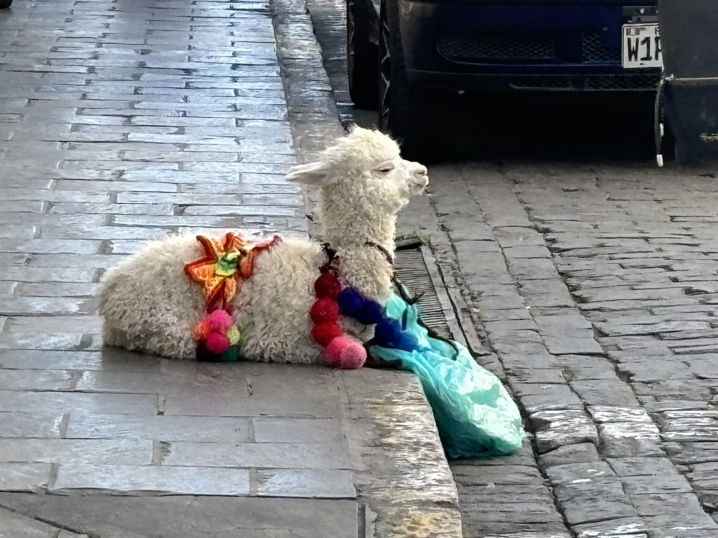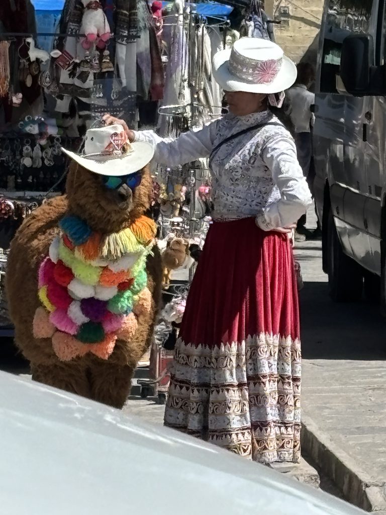Anschließend haben wir Lamas und Alpakas in einer traditionellen Weberei begrüßt und eine erste Tuchfühlung (Wortspiel) mit der Stadt aufgenommen. Natürlich haben wir auch einige Teile in Alpaka-Wolle erworben, wobei wir es uns nicht zu einfach gemacht haben und verschiedene Händler in der Stadt bedacht haben.