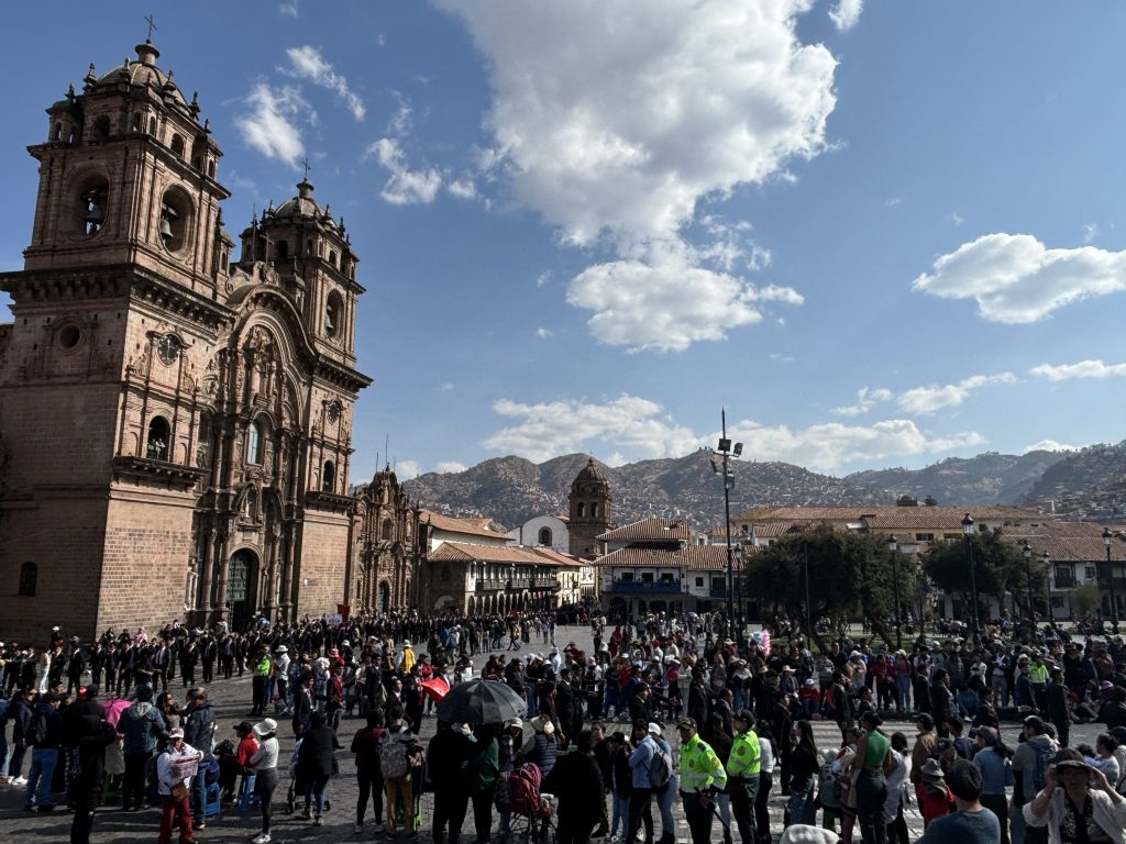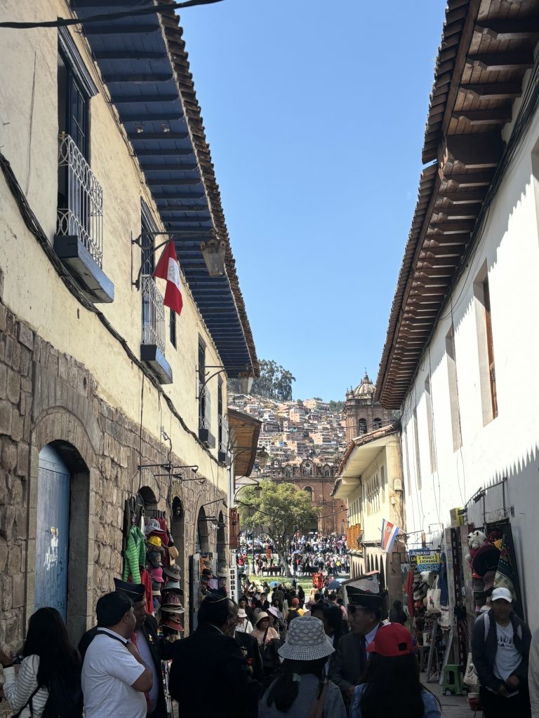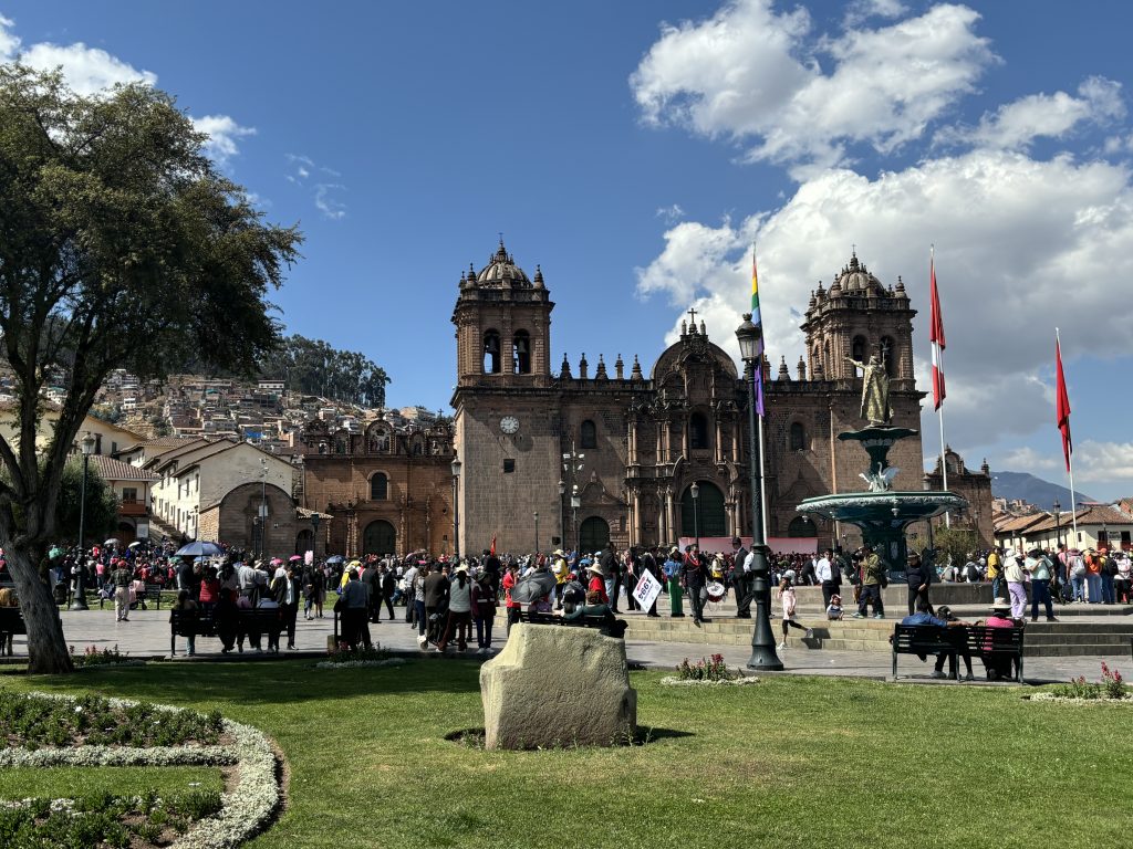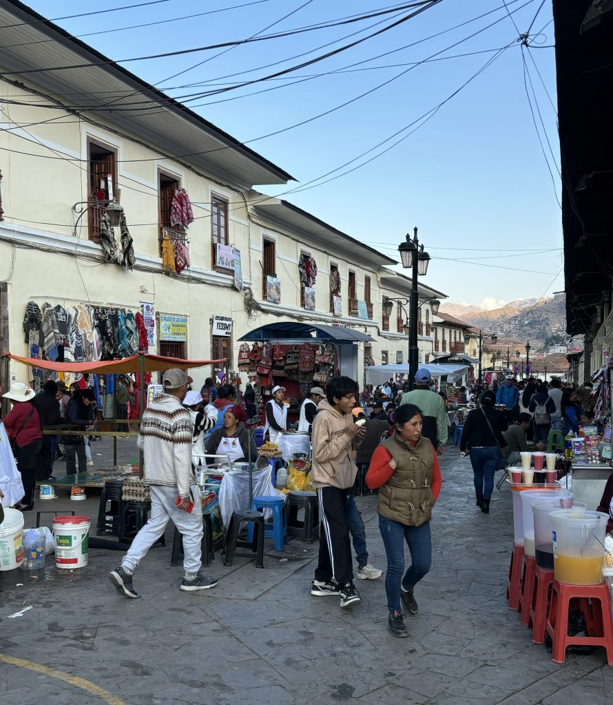 Noch ein Blick auf den Hauptplatz der Stadt, der immer dicht bevölkert ist, ohne dass auch nur die kleinste Aggression zu spüren ist. Ohnehin sind alle Peruaner, die wir kennengelernt haben, überaus freundlich und entgegenkommend..