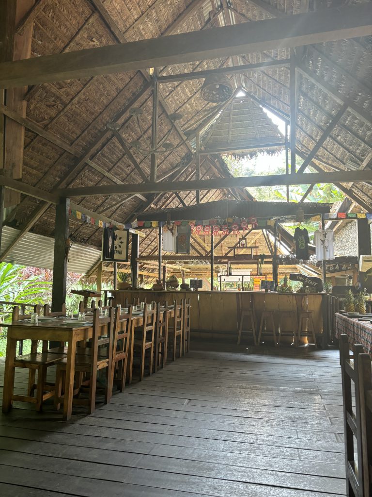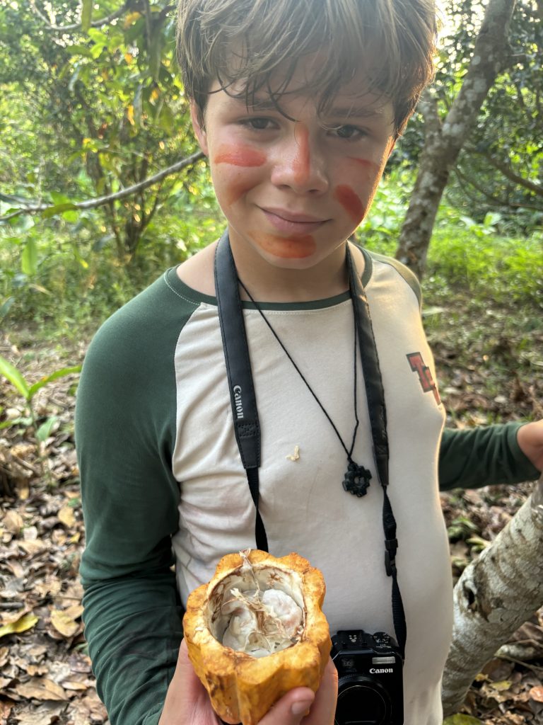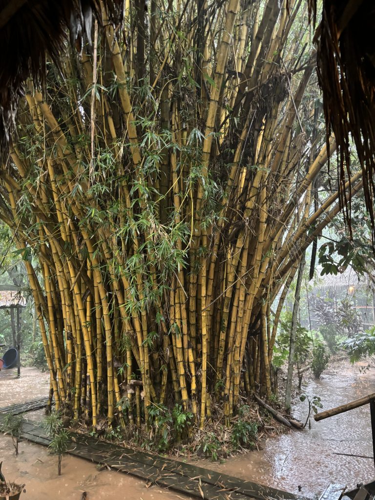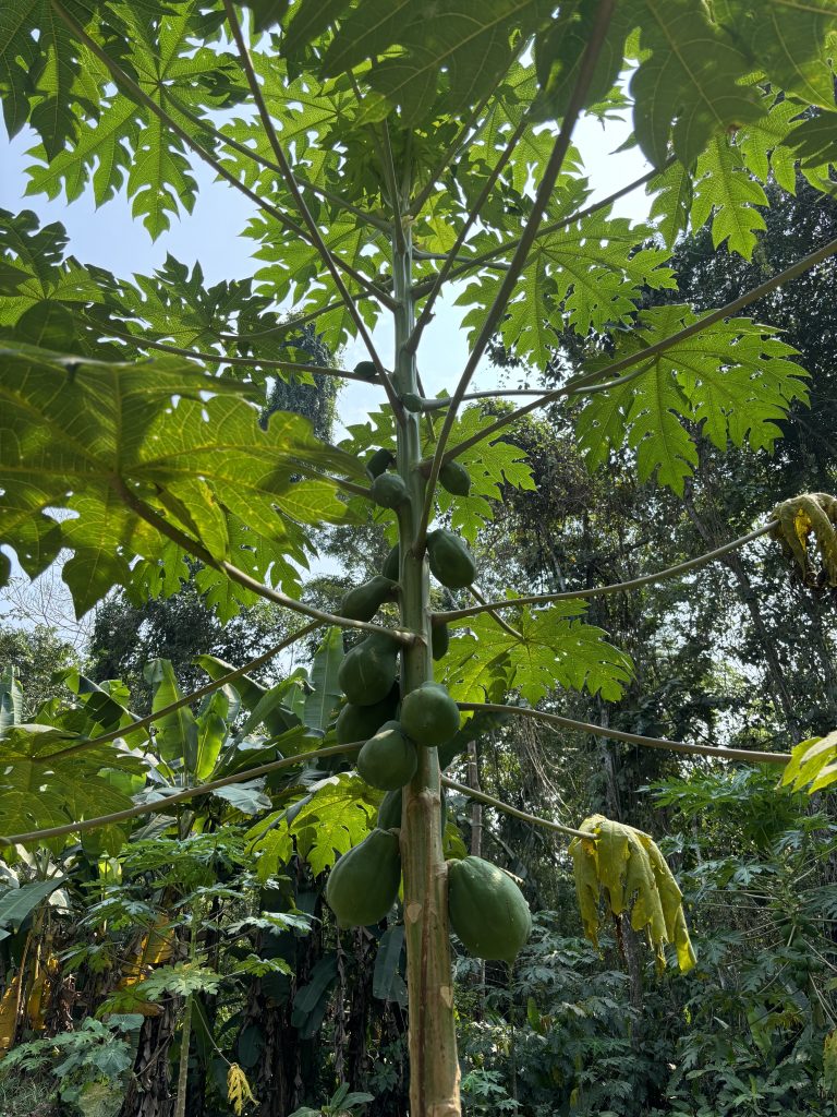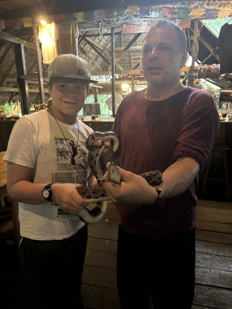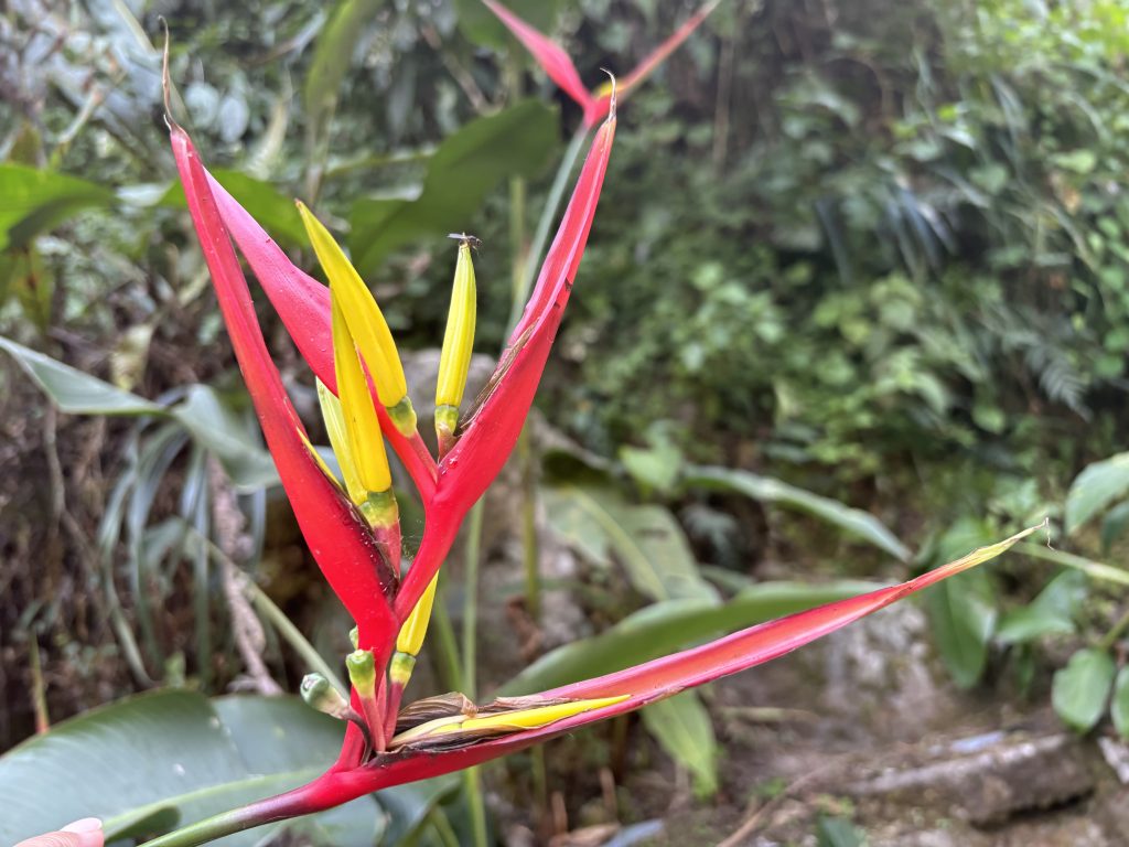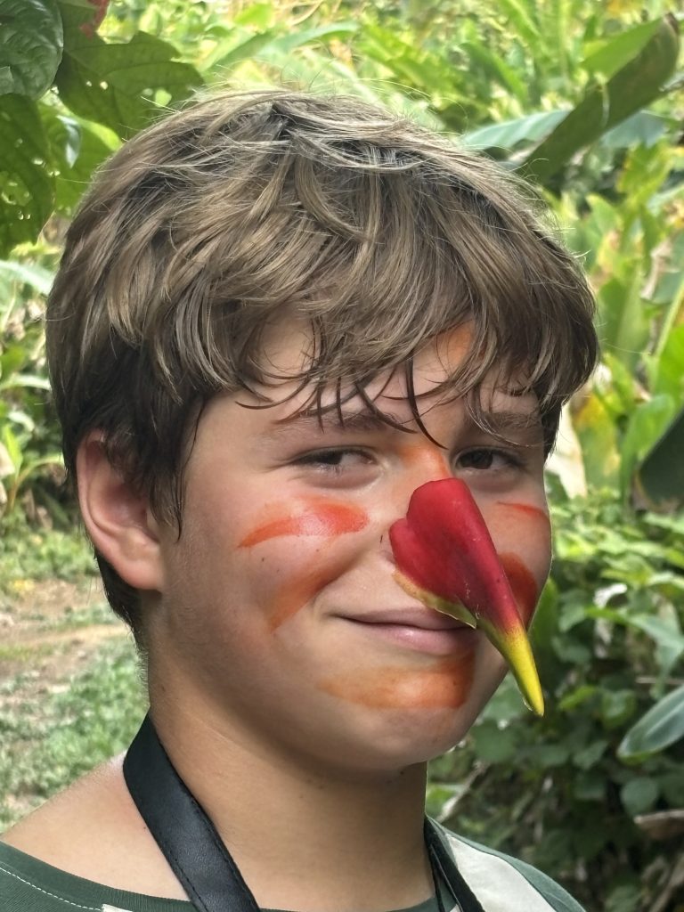 Zunächst das Positive: Essen und Freundlichkeit wie immer top, wenn auch anders. Hans ist völlig hin und weg und ist ganz vernarrt in unseren Guide Bryan. Er bringt ihm deutsche Vokabeln bei, sie tauschen sich über Musik und Fußball aus – herrlich. Und: Aufstehen erst um 7:30 Uhr, also fast ausschlafen. Das nicht so schöne: weiterhin 33 Grad bei hoher Luftfeuchtigkeit, man kommt aus dem kalt Duschen nicht raus. Wir treffen uns um 9:45 Uhr zum Plant Trail – wieder in voller Montur, was aber auch egal ist, weil alle Sachen eh leicht klamm sind und kleben.