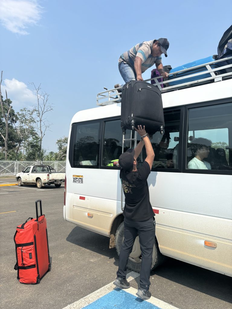 9:25 Uhr – ein Taxi bringt uns zum Flughafen von Cusco. Das war fast wie Ausschlafen. 13:00 Uhr nach ca. einer Stunde Flug sind wir gut gelandet. Ausstieg auf dem Rollfeld, wir werden von einer Hitzefront erschlagen. Willkommen im Dschungel! Gott sei dank lässt das Gepäck nicht lange auf sich warten, so sitzen wir nicht sehr viel später im gut temperierten Kleinbus.