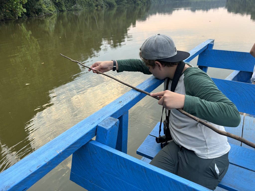 Das nächste Highlight: Wir angeln uns unser Abendbrot – Piranhas! Angeblich ebenfalls ungefährlich und sehr schmackhaft, ein einzelner Piranha knabbert nur ein wenig, die Masse macht es! Aber wer sagt uns, wie viele da unten auf einen warten?