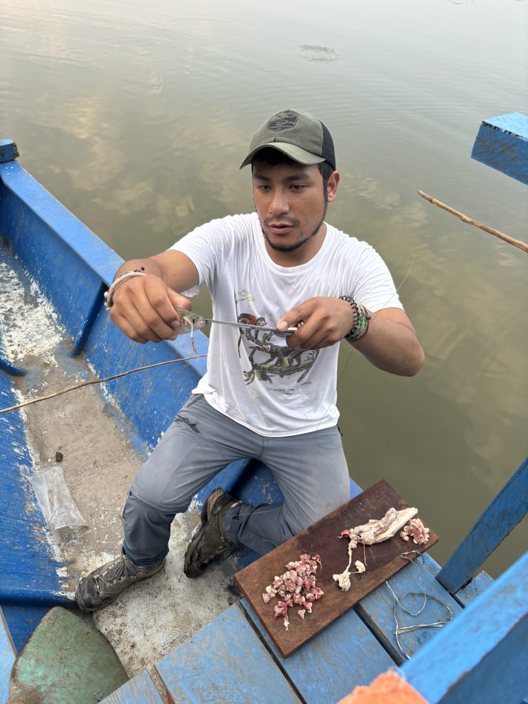 Köder Material – gar nicht so einfach, wir haben mehr gefüttert als geangelt. Wahrscheinlich hätten wir aus dem Fleisch eher ein Gulasch für uns machen sollen.