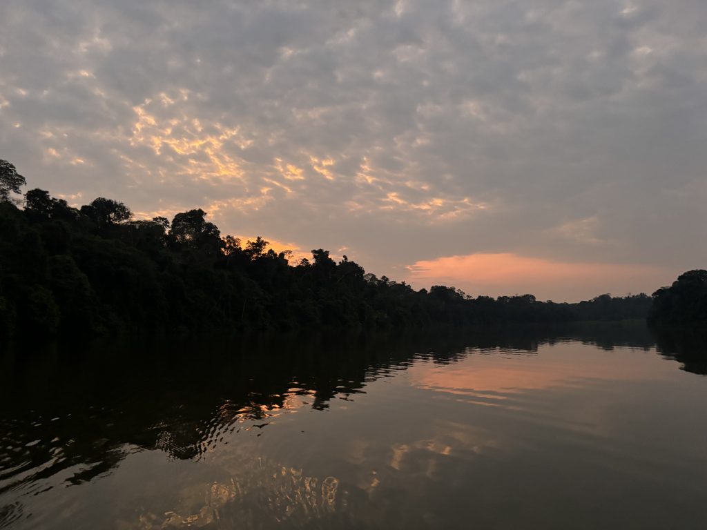 Abendromantik auf dem See – danach ging es im Dunklen erst wieder zurück ans Ufer, die 25 Minuten Fußweg zurück und dann komplett im Dusteren auf dem Fluss zu unserer Lodge. Da hieß es Vertrauen!