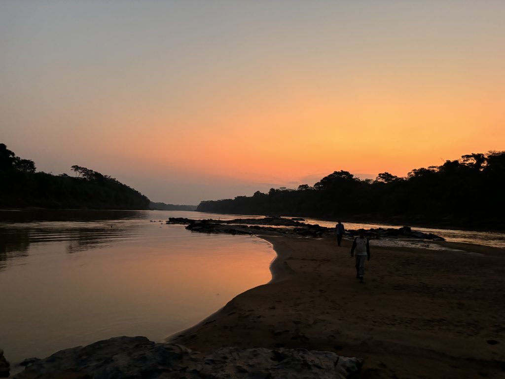 Kleiner Stopp auf dem Rückweg auf einer „Insel“ im Fluss – Sun dawning