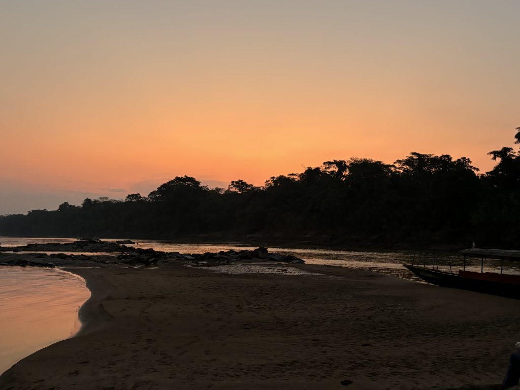 Es geht noch einmal zu dem See in der Hoffnung, Riesenotter zu sehen. Und was sollen wir sagen: wir wurden gleich mit einer 8 köpfigen Familie belohnt. Es war unglaublich schön, Sonnenaufgang und Stille des anbrechendes Tages mitzuerleben. Auf dem Katamaran haben wir gefrühstückt, und dann kamen sie.