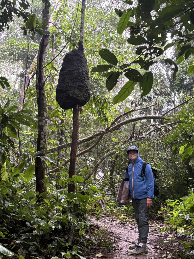 Ein Glück versickerte das ganze Wasser doch relativ schnell. Im Baum sieht man übrigens eines von unzähligen Termiten Häusern, die Waldpolizei und Proteinquelle – Hans hat natürlich auch eine gekostet 🫣
